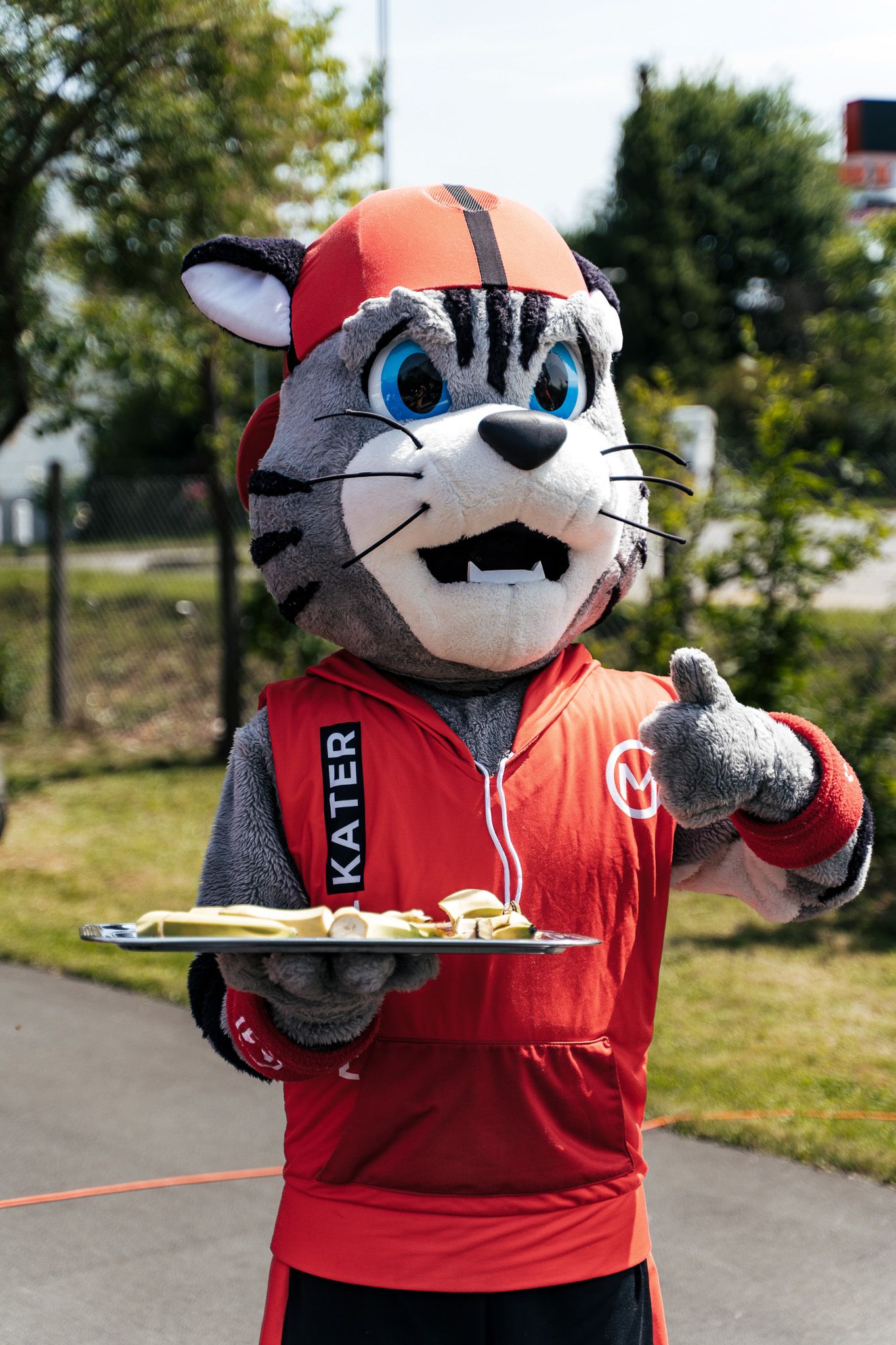 Mucki ist das offizielle Maskottchen vom FC Gießen und bringt dort richtig Stimmung. Ob Heimspiel oder Event – er hyped die Crowd, supportet das Team und sorgt dafür, dass alle mit einem fetten Grinsen nach Hause gehenMucki ist einfach die gute Laune auf zwei Beinen und gibt der ganzen FC-Gießen-Gemeinschaft einen richtigen Energieschub.