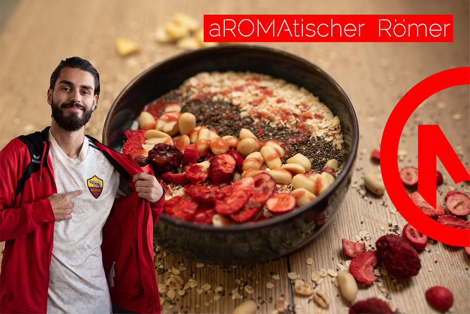 In den Vereinsfarben Gold und Burgunder erstrahlt der Grund des Römers, der sich geschmacklich in Vanille und Heidelbeere als Protein definiert. Sein Spitzname ist "I Lupi" 🐺, denn wie ein Rudel hungriger Wölfe wirst du dich auf die Haferflocken, Chiasamen und den Beerenmix stürzen. 50 g Protein 💪 machen deine Muskeln NDicka.